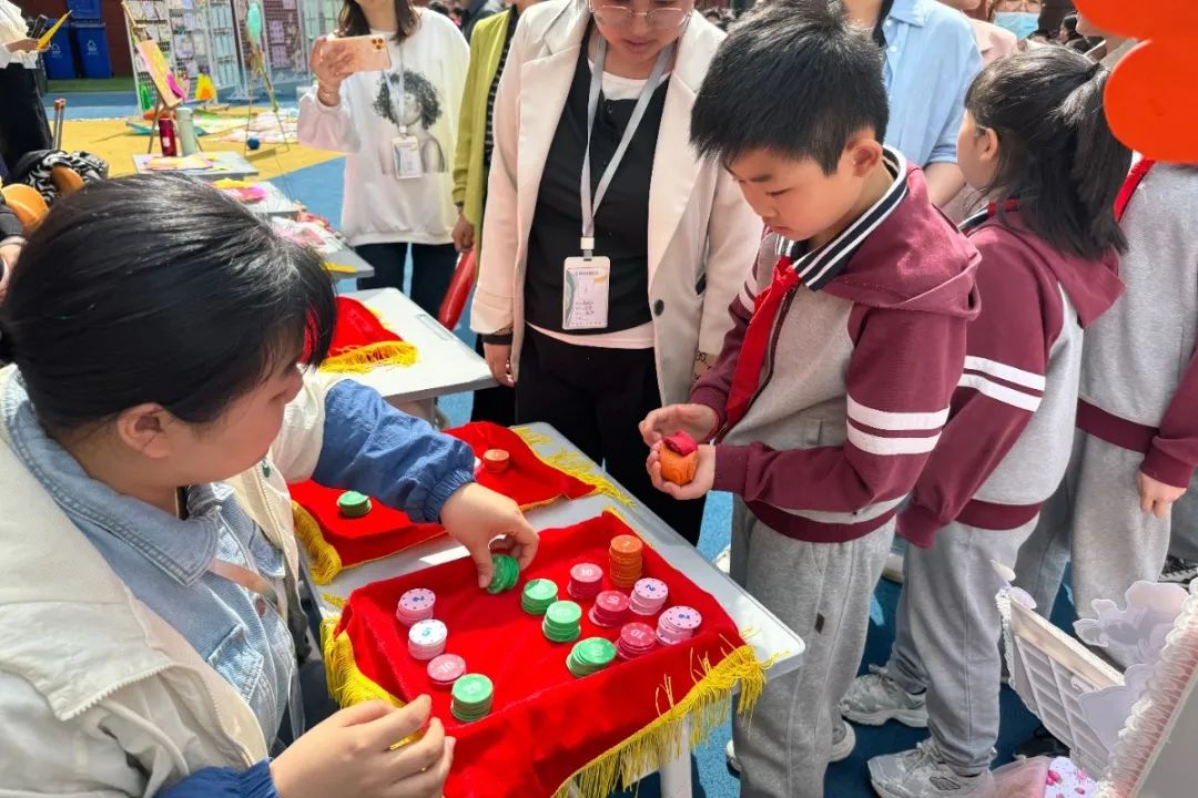 有的同学则是精明的摊主,他们不仅巧舌如簧,热情地介绍着自己手工艺品的独特之处,还巧妙地与其他摊主进行物物交换,